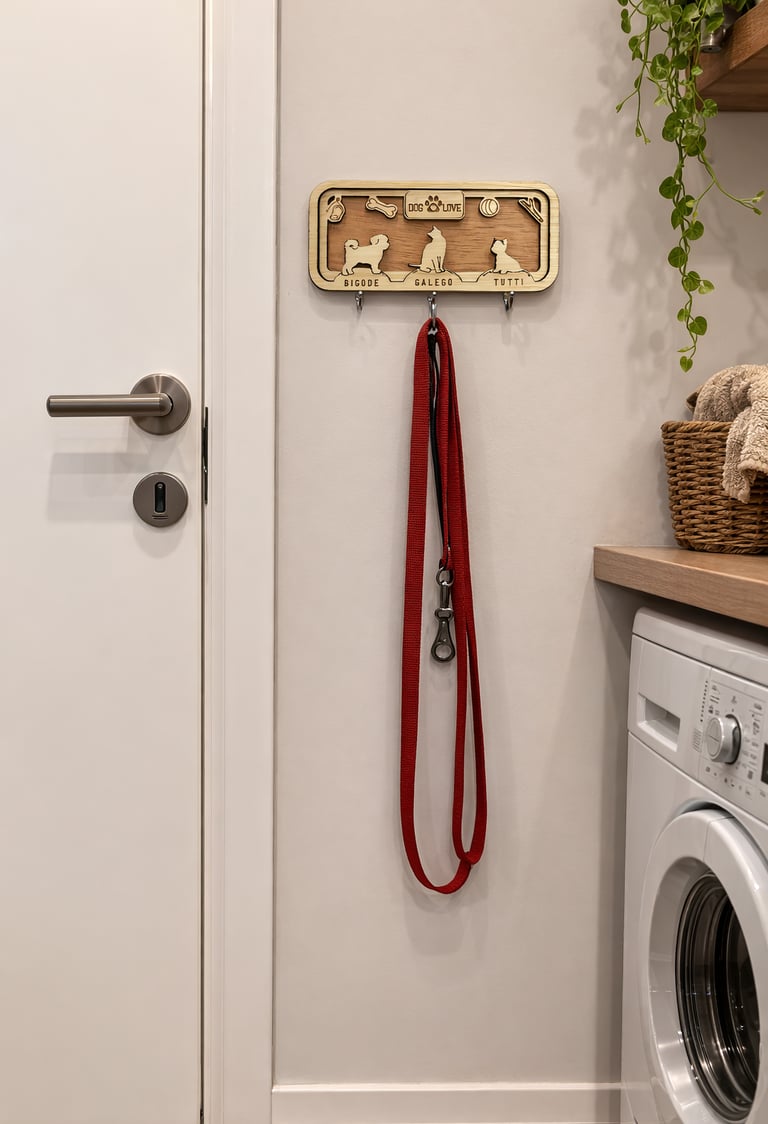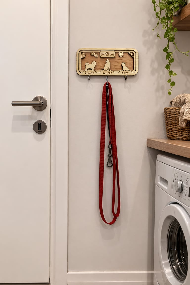 ✓ Com o Porta-Coleira na parede, você chega, pendura e pronto — na próxima saída está lá, no lugar, te esperando.